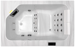 Встроенный озонатор обеспечивает гигиеническую чистоту воды в чаше и её не приходится часто менять. Благодаря оптимальной глубине чаши люди разного роста чувствует себя в бассейне максимально удобно. Такой бассейн прекрасно подходит для отдыха с семьей или в небольшой компании друзей.