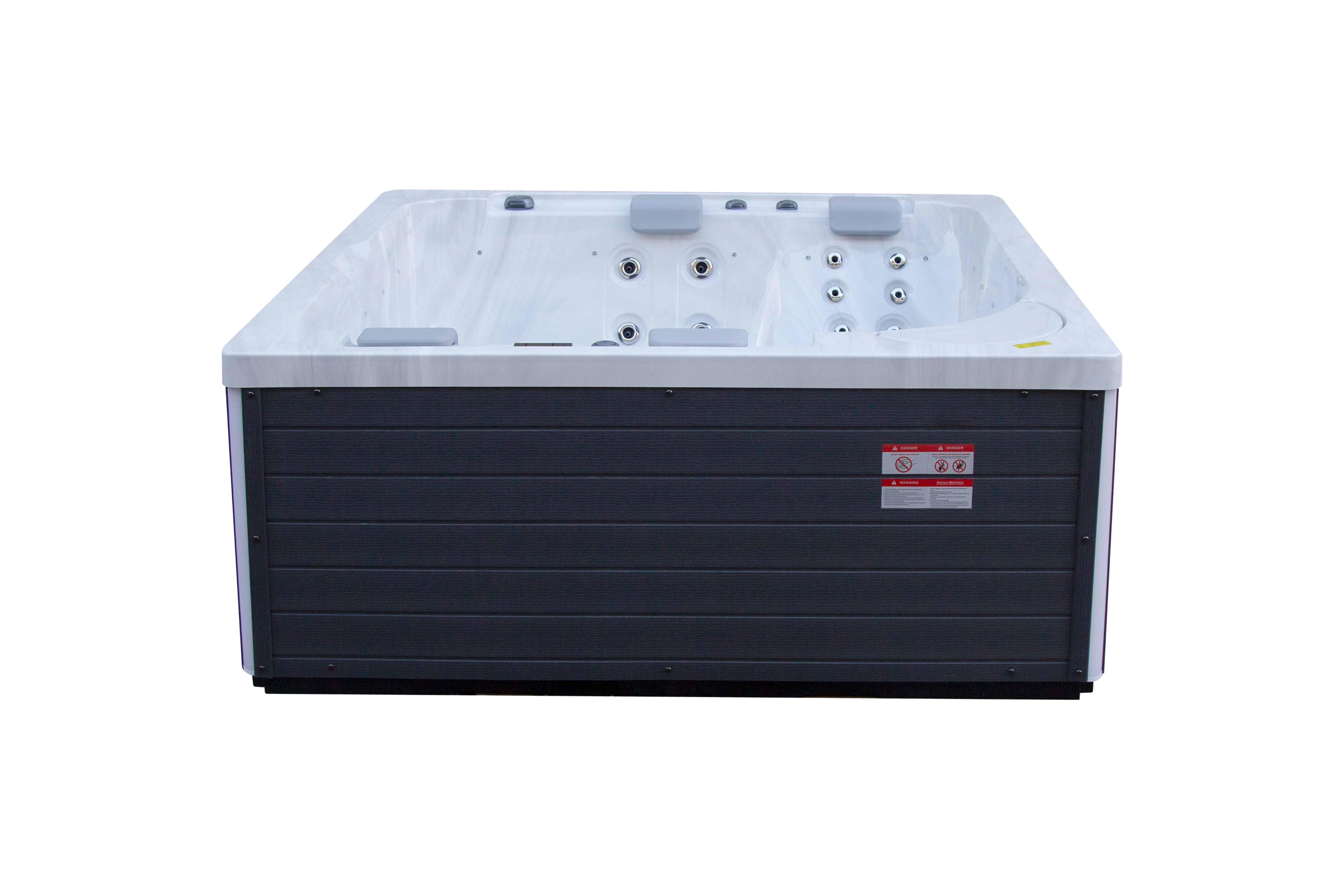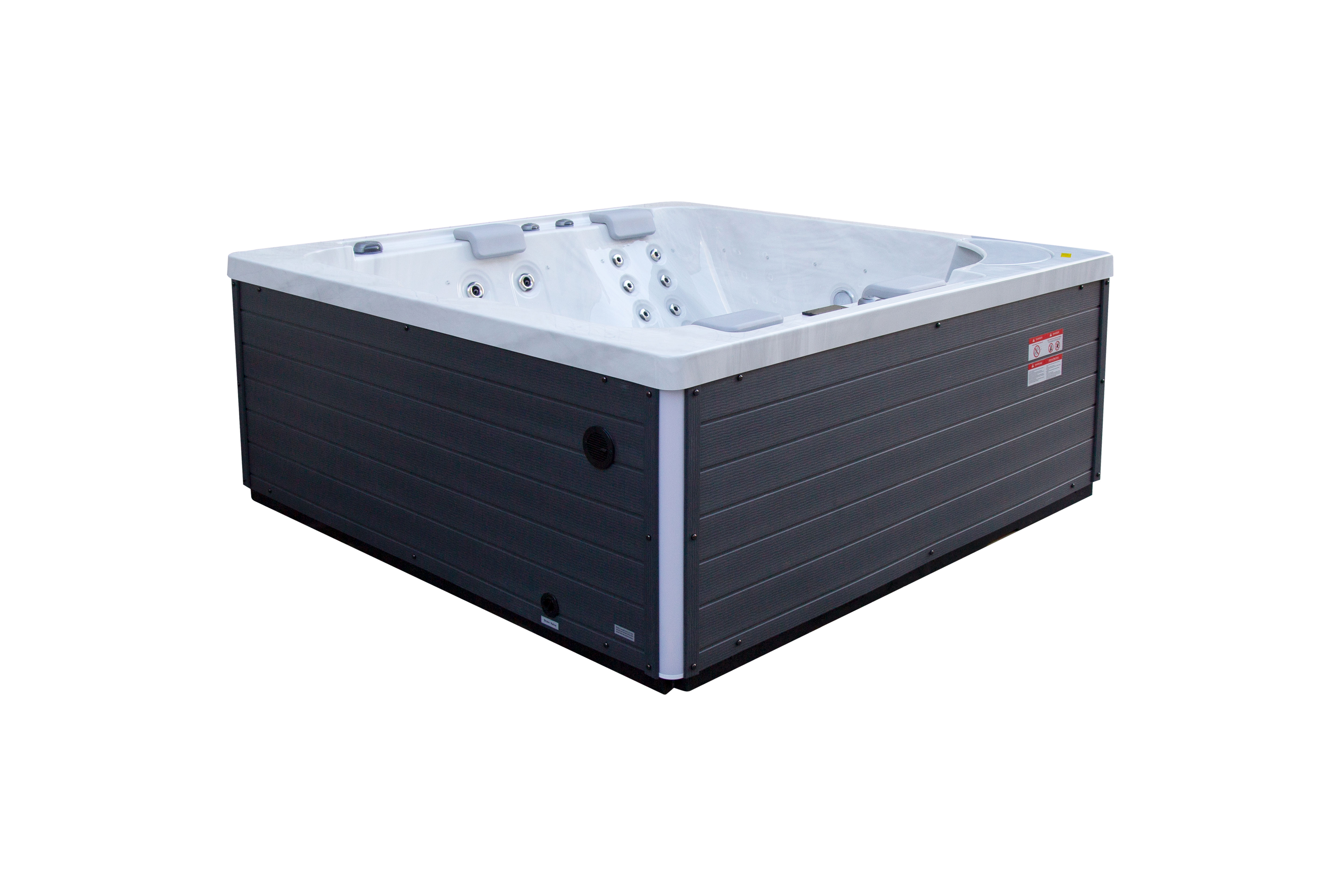 NordicSpa Liv с размером чаши 2,2 x 2,2 м идеально подходит для установки как в помещении, так и на улице. Просторная квадратная чаша с пятью эргономичными подголовниками комфортно вмещает до четырех человек, создавая условия для полноценного отдыха и общения.