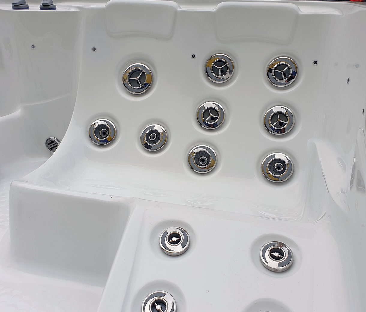 Гидромассажный Спа-Бассейн JNJ SPAS Spa-355 оснащен: 26 мощных форсунок, эко умный 2 кВт нагреватель, стильные накладки форсунок из нержавеющей стали и термоизолирующее утепление чаши.