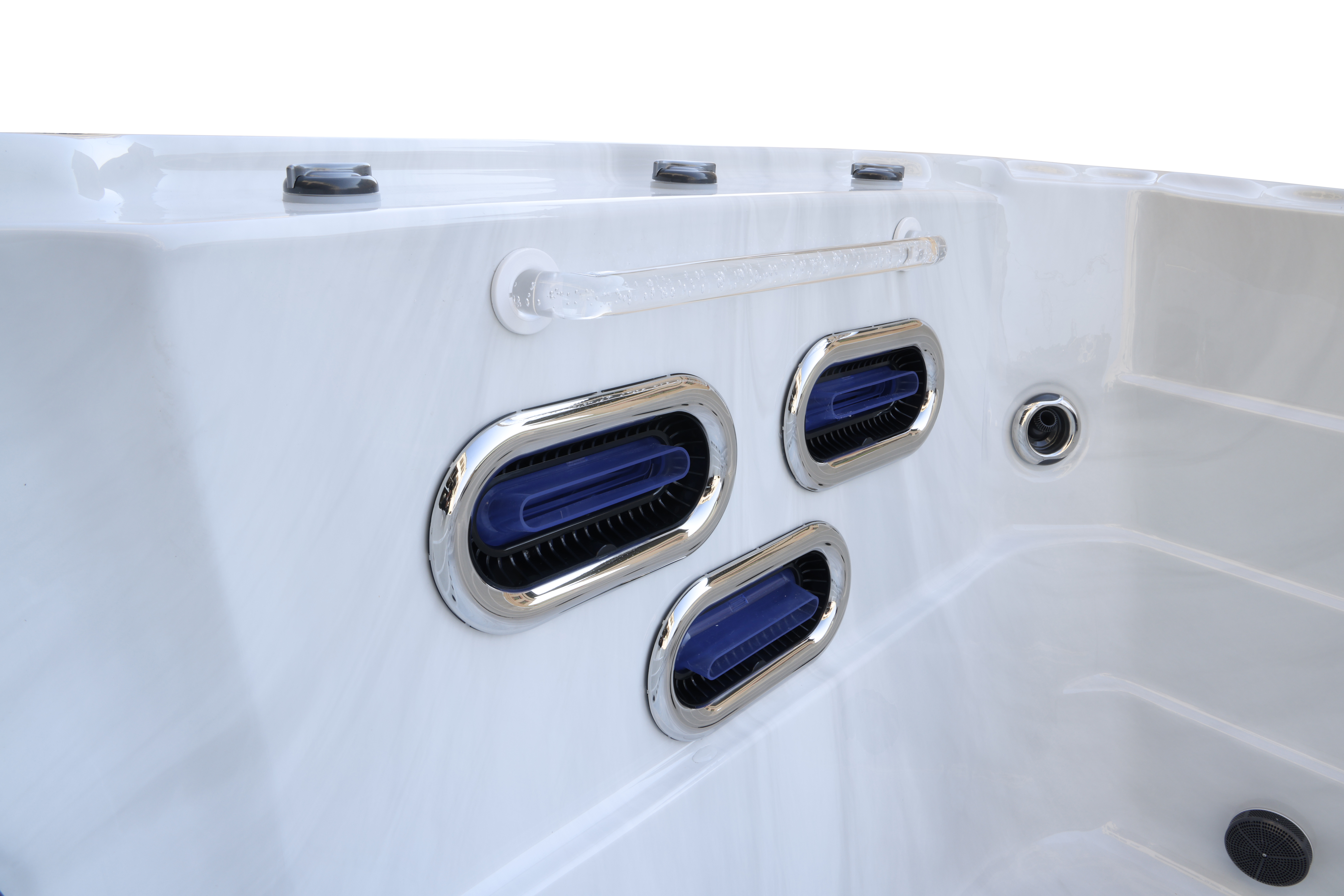 Прозрачный поручень из пищевого пластика обеспечивает дополнительную безопасность и удобство использования, завершая концепцию премиального спа-опыта.
